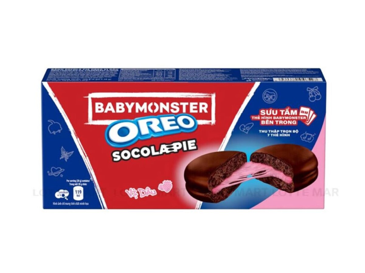Ingredients: Sugar, Maltose syrup, wheat flour, vegetable oil (Palm), egg, cocoa powder (6.3%), humectants (422, 420(ii), 420(i)), dextrose, emulsifiers (475, 322(i), 471, 492, 1520, 491, 470(i)), gelatin, rasing agents (450(i), 500(ii)), salt, stabilizers (1442, 415), artificial flavors, acidity regulator (330), preservative (202), flavor enhancer (1104), artificial colar (120).